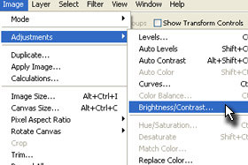 Kliknite ponovno zgoraj na Image, Adjustments in izberite Brightness/Contrast...