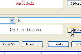 Kliknite na gumb Oblika ... in tokrat določite zeleno barvo. Potrdite spremembe na gumb V redu. |