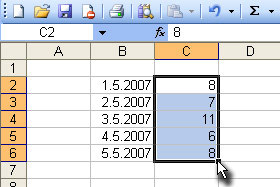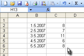Sedaj pa v en stolpec vpišite datume, v drugi stolpec pa število opravljenih ur.