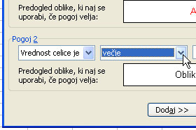 Izberite Vrednost celice je in nato večje (glej sliko)... |