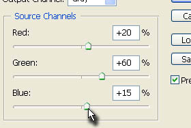 Sedaj pa v polju Source Channels določajte jakost podanih barv.