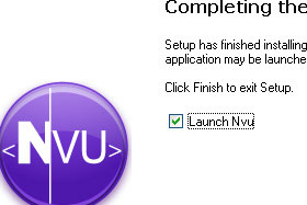 Označite Launch Nvu in kliknite na gumb Finish. |