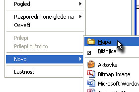 Kliknite na prazno polje z desnim miškinim gumbom, izberite Novo in Mapa. |