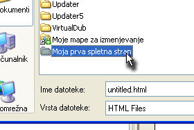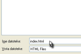 Sedaj pa v istem oknu spodaj v polje Ime datoteke vpišite index.html in kliknite na gumb Shrani.