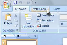 Kliknite na zavihek Vstavljanje.