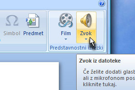Zvočna ikona se je pojavila na diaprojekciji.
