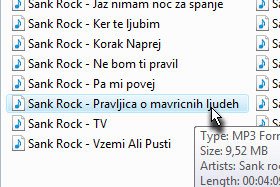 Označite poljubno glasbeno datoteko in kliknite na gumb V redu. |