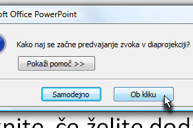 PowerPoint vas vpraša, kako naj se začne predvajanje zvoka.