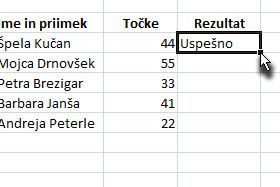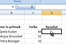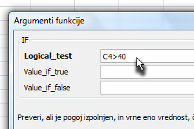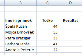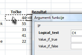 Kliknite v prazno polje, ki predstavlja Logical_test in potem z miško kliknite na celico, ki predstavlja število točk pri pri osebi (glej sliko). |