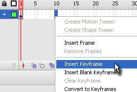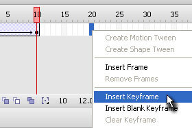 Kliknite na Frame 10 z desnim miškinim gumbom in izberite Insert Keyframe.
