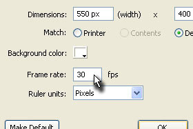 V polje Frame rate vpišite 30 fps in kliknite na gumb OK. |
