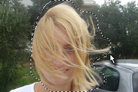 Obkrožite sedaj predel, kjer se nahajajo lasje.