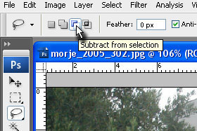Kliknite zgoraj na Substract from selection (glej sliko). Za označitev nam omogoča brisanje prej označenega. |
