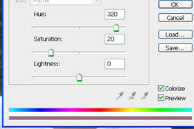 Pritisnite tipki CTRL + U, da boste odprli okno za določanje barve. Označite Colorize. Potem pa se malo igrajte z drsniki, da boste našli pravo barvo. Jaz sem Mojci določil vrednosti Hue 320, Saturation 20 in Lightness 0. Kliknite na gumb OK. |