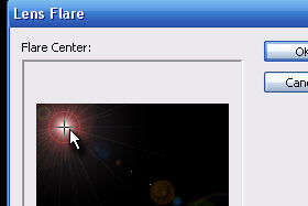 Potem pa kliknite zgoraj na Filter, Render in izberite Lens Flare...