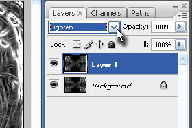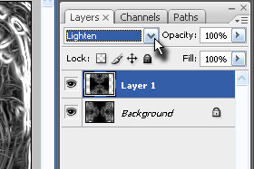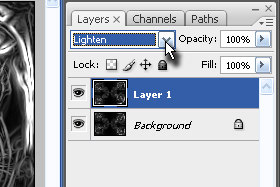 Potem pa duplicirani sliki določite senčenje na Lighten (glej sliko).