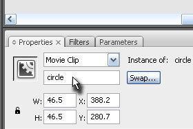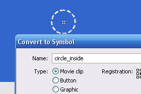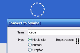 Potem pa pritisnite tipko F8 in v polje Name vpišite circle. Označite Movie clip in kliknite na gumb OK. |