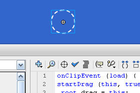 onClipEvent (load) { startDrag (this, true); _root.drag = this; } onClipEvent (mouseDown) { _root.difx = this._x- _root.object._x; _root.object.targetx = this._x; _root.dify = this._y- _root.object._y; _root.object.targety = this._y; _root.done = False } Zaprite okno Actions. |