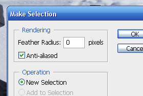 Feather Radius določite 0 pixels in kliknite na gumb OK. |