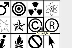 Kliknite dvakrat na polljuben simbol. Jaz sem izbral simbol Copyright. |