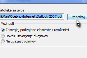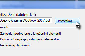 Sedaj še preko gumba Prebrskaj ... določite prej izvoženo datoteko in kliknite na gumb Dokončaj.