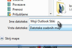 Določiti moramo še mapo, kjer bomo datoteko s stiki shranili.