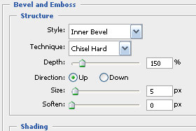 Kliknite zgoraj na Layer, Layer Style in izberite Bevel and Emboss...