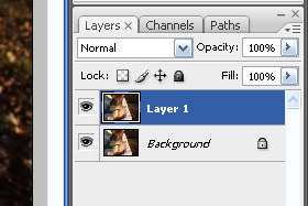 Držite tipko CTRL in kliknite na prej dupliciran layer (glej sliko). Layer z prelivom mora ostati označen. |