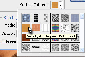 Potem pa izberite Pattern, ki se imenuje Wood (glej sliko) ter kliknite na gumb OK.