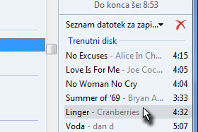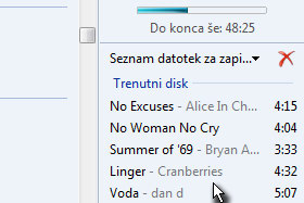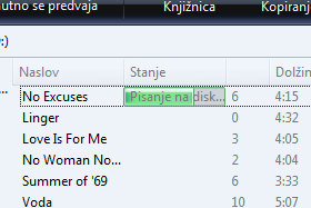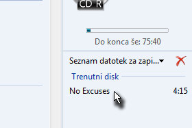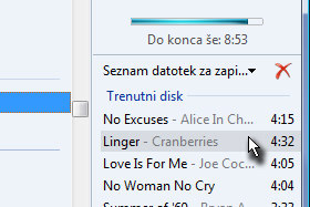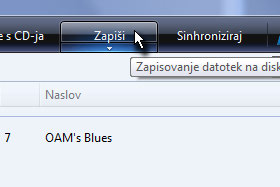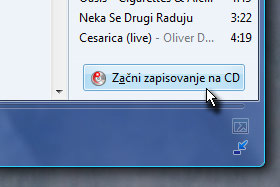 Windows Media Player bo začel zapisovati skladbe na CD.