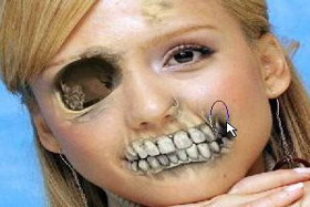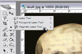 Izberite orodje Magnetic Lasso Tool in začnite očrtovati lobanjo. Ko končate pritisnite tipki Ctrl + C da sliko kopirate. |