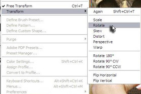Če je potrebno sliko rotirati kot v mojem primeru, izberemo zgoraj Edit, Transform, Rotate.