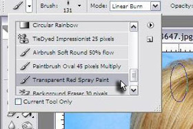 Odprite Tool present picker in izberite Transparent Red spray Paint. |