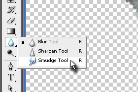 Držite z miško na orodju Blur Tool (bližnjica je tipka R) toliko časa, dokler se ne prikažejo ostala orodja. |