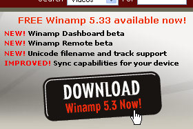 Na splenti strani poiščite in kliknite na DOWNLOAD Winamp Now!