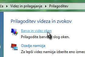Nahajate se v oknu prilagoditev videza in zvokov, kjer kliknite na Barva in videz oken.