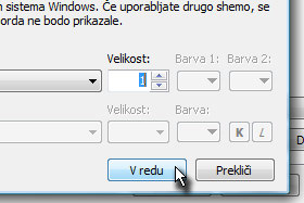 Seveda lahko nastavite tudi drugi velikost. Jaz sem nastavila velikost 1, ker imam raje ožje robove. Potrdite prilagoditve na gumbek V redu in nato še enkrat, da se prilagoditev tudi spremeni v okolju Windows Vista. |