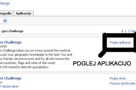 Npr.: Geo challenge, Bowling buddies, Word challenge, Who has the biggest brain?, Pet society, LX Football world cup ... Ko ste aplikacijo izbrali pritisnite na desni Poglej aplikacijo (glej sliko), potem izberite na desni Pojdi v aplikacijo in na koncu še gumb Dovoli. In dodali smo igro. |