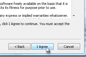 Če se s pogoji strinjamo pritisnemo I Agree, v nasportnem pirmeru pritisnemo Cancel in namestitev bo prekinjena. |