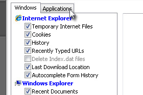 Na levi strani je meni. Prva postavka je Cleaner. Ta funkcija nam izbriše začasne datoteke, piškotke, zgodovino brskanja, izprazni koš in podobne funkcije. Te datoteke so ponavadi neuporabne in zasedajo veliko prostora. Izberemo katere datoteke naj izbriše. Posebej lahko izbiramo med brskalniki (IE, Firefox, Chrome ...). Na sliki je oddelek Windows, zgoraj pa imate še oddelek Applications. |