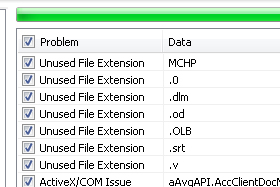 Ta funkcija pregleda registre (posebne nastavitve sistema) in izpiše napake v njih (neuporabljena končnica datoteke, napačna pot programa ...). V izbirnem polju označimo vse ter kliknemo Scan for Issues. Prikažejo se rezultati. |