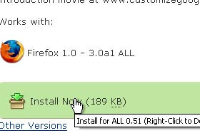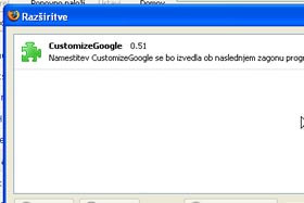 Odpre se vam podstran z razširitvjo customizegoogle. Kliknite na povezavo Install Now.