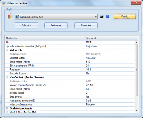 V levem meniju kliknemo Video in All to Mobile Device. |