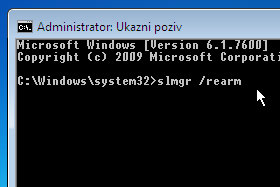 Odpre se vam DOS okno, kjer vpišite slmgr /rearm in potrdite na tipko ENTER.