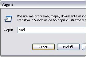 V okno, ki se vam bo odprlo napišite cmd in kliknite V redu ali pa pritisnite tipko ENTER.