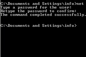 Napisalo vam bo The command completed successfully. in geslo uporabniškega računa se bo spremenilo.