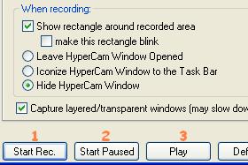 S prvim gumbom začnete in končate snemanje(F2). Z drugim gumbom začasno ustavite in naduljujete(F3). S tretjim gumbom pa predvajate kaj ste posneli. |