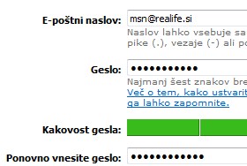Vpišite email naslov, geslo in ponovno geslo za preverjanje.