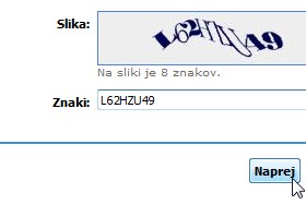 Za konec izpolnjevanja prepišite znake s slike in kliknite na gumb Naprej.
