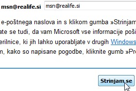 ![]() Pokaže se nova stran. Svoj email prepišemo v okence in kliknemo Strinjam se. Pred klikom na gumb si oglejte pogoje uporabe. |